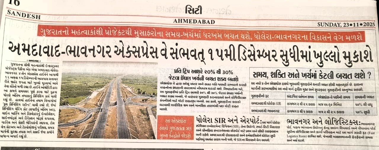 Previous Next Ahmedabad-Dholera-Bhavnagar Express Highway will become officially operational before 15-Dec-2025. Posted by DholeraOne on November 23, 2025 Dholera, Dholera Exrpessway, Real Estate 0 Comments
