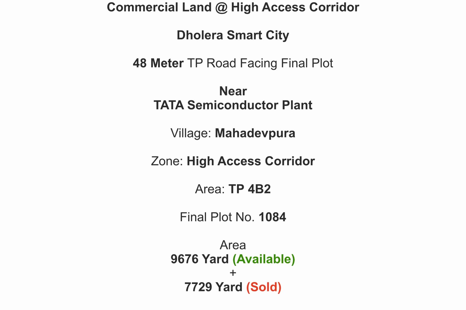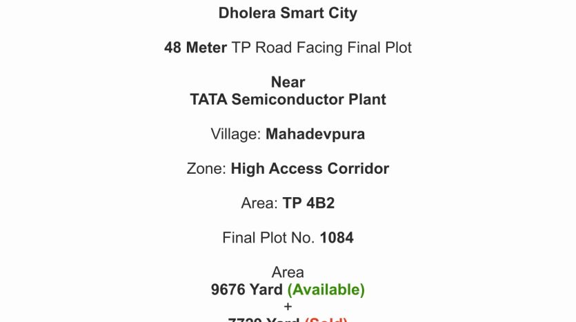FP 1084, 48 Meter TP Road, High Access, TP-4B2, Mahadevpura, Dholera Smart City