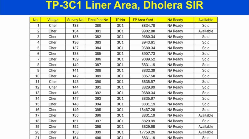 NA Ready, BIG Residential Land Parcel INSIDE Dholera Smart City, TP-3C1, Cher
